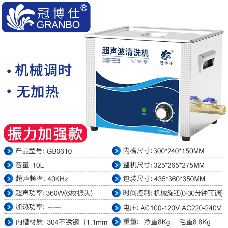 冠博仕GB0610超聲波清洗機|10L/360W|機械定時無加熱