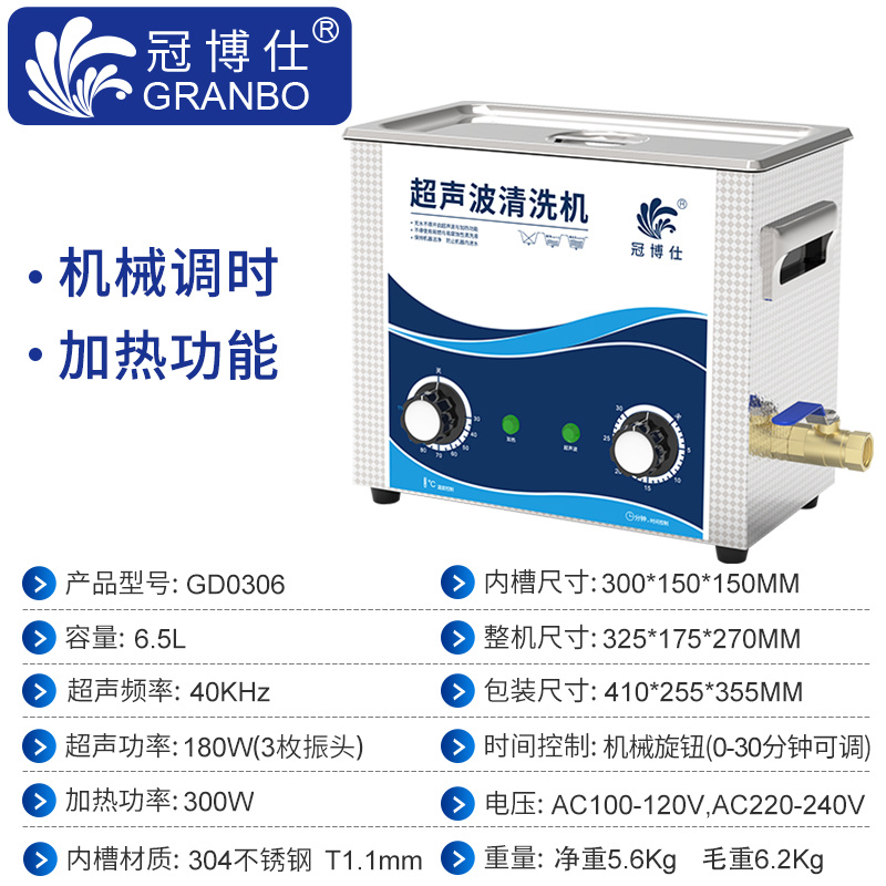 冠博仕GD0306超聲波清洗機(jī)|6.5L/180W|機(jī)械定時(shí)調(diào)溫