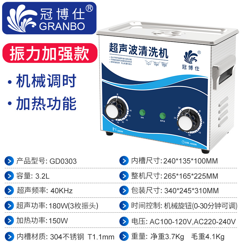 冠博仕GD0303超聲波清洗機(jī)|3.2L/180W|機(jī)械定時(shí)調(diào)溫