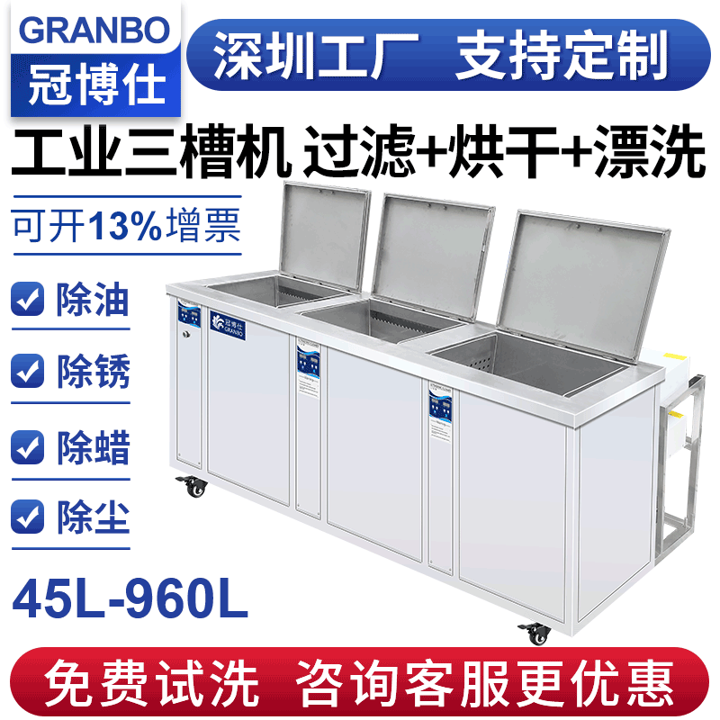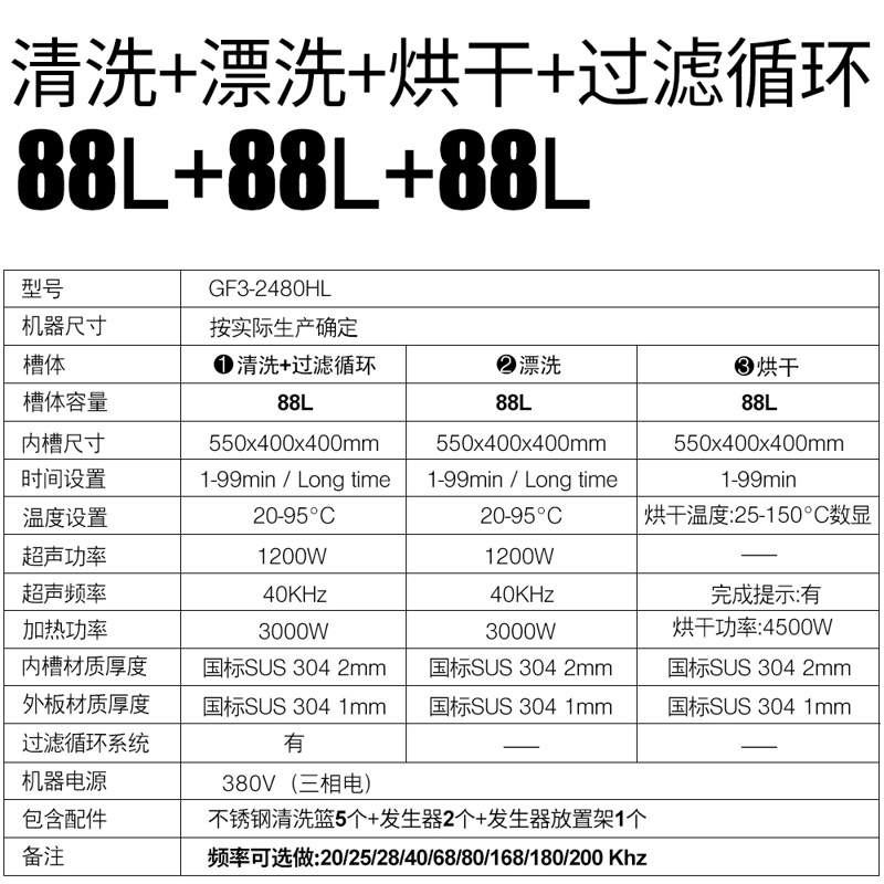 冠博仕GF3-2480HL三槽超聲波清洗機|88L/1200W|45L-960L容量可選支持定制