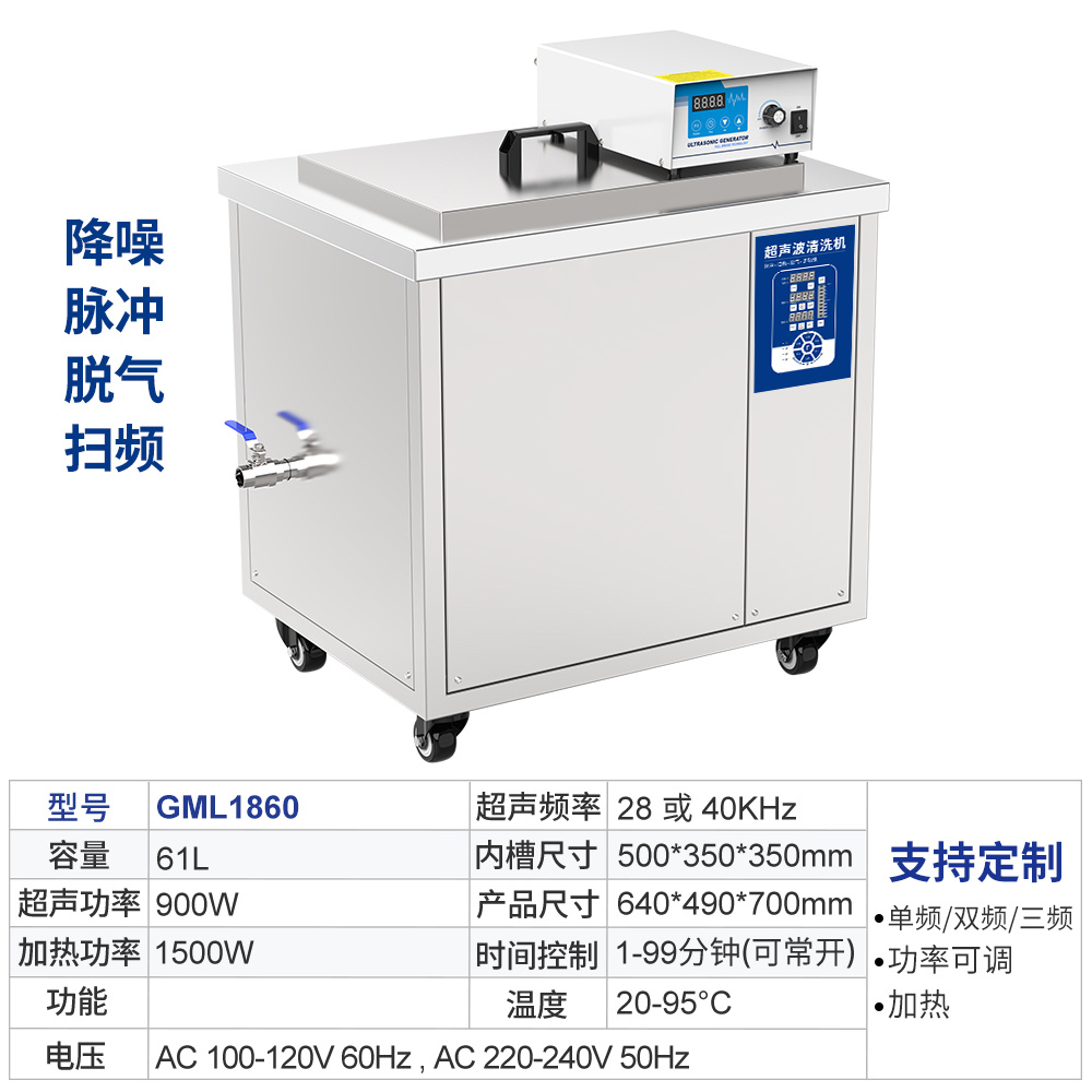 冠博仕GML1860降噪單槽超聲波清洗機 | 61L/900W | 五金零件除油除蠟清洗