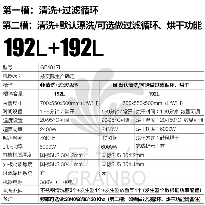 冠博仕GE4817LL|雙槽超聲波清洗機|192L/2400W|支持定制