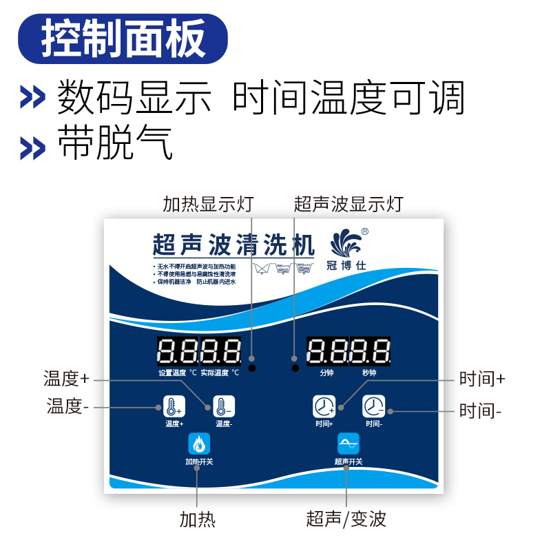 • 數碼顯示:數碼顯示清洗時間且有倒計時讀秒功能;