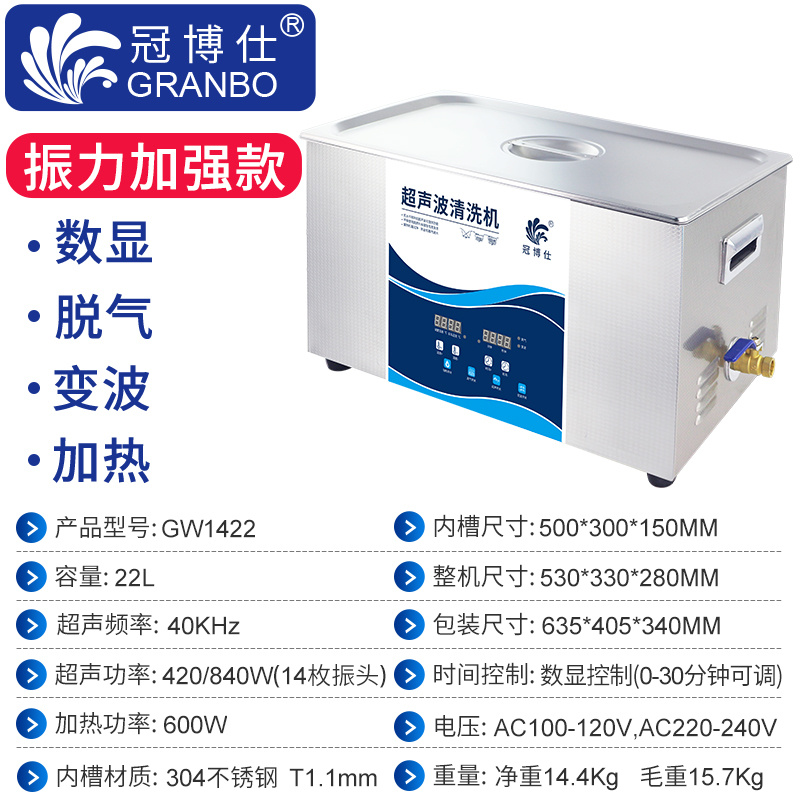 冠博仕 GW1422超聲波清洗機|22L/840W|變波脫氣帶加熱
