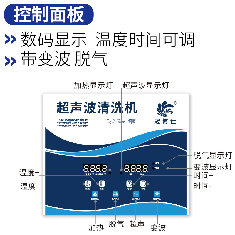 - 啟動加熱功能,清洗槽內液體不得低于清洗槽內槽高度的2/3;不開啟加熱功能,清洗槽內液體不得低于清洗植內精高段的1/2。