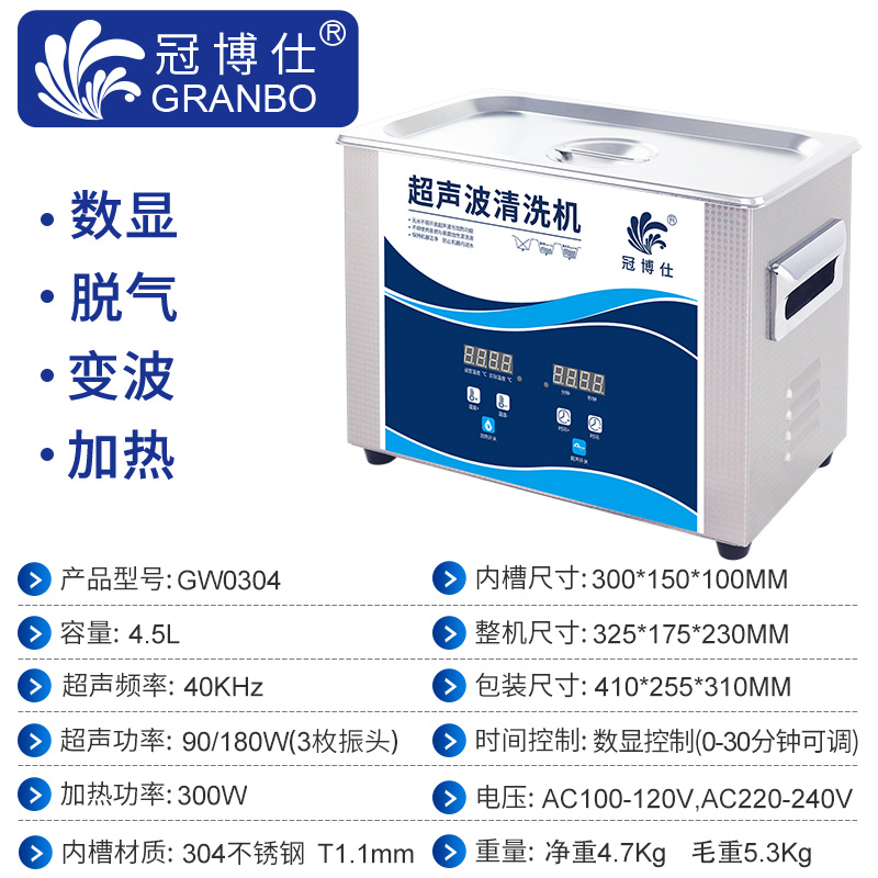 - 超聲波清洗機與清洗劑一起使用,清洗效果更佳!