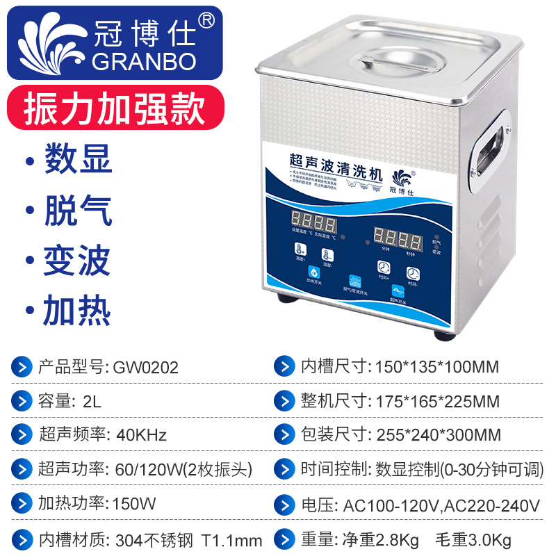 冠博仕GW0202超聲波清洗機|2L/120W|變波脫氣帶加熱