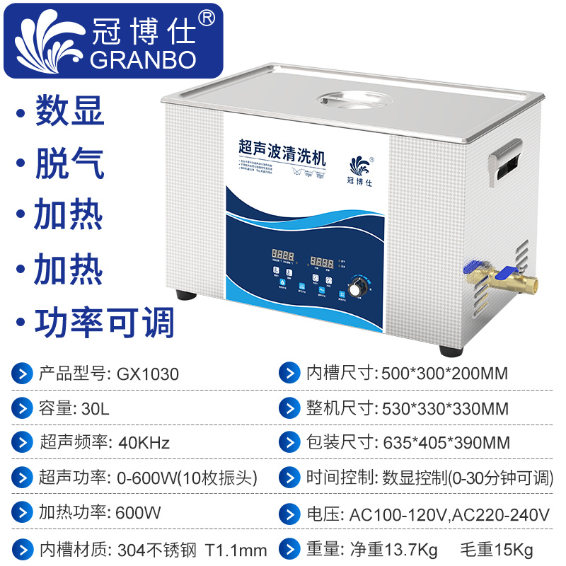 冠博仕GX1030超聲波清洗機(jī)|30L/600w|功率可調(diào) 數(shù)碼變波脫氣 帶加熱