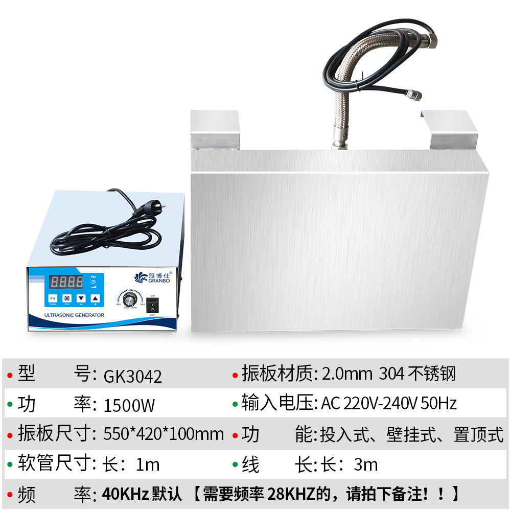超聲波震板、發(fā)生器、發(fā)生器電源、說(shuō)明書(shū)、合格證保修卡、內(nèi)置珍珠泡沫。
