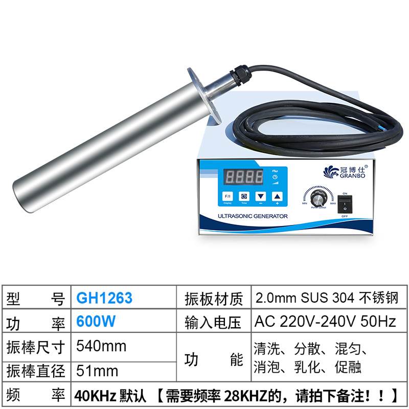 冠博仕GH1263超聲波振棒|540mm/600W |清洗 乳化 分散 混勻 促融 支持定制